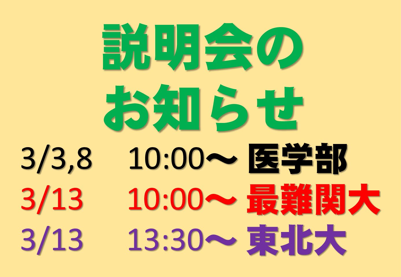 医学部医学科・最難関大学・東北大学志望者のみなさんへ 説明会を開催します。 早い…